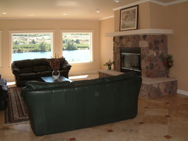 Located on the Columbia River, this 6,000+ sq. ft. home not only has a spectacular panoramic view, it also has a community park close by for the kids. The stone on the exterior of the home blends into a natural environment and comes together with an extensive water feature that really brings you home.